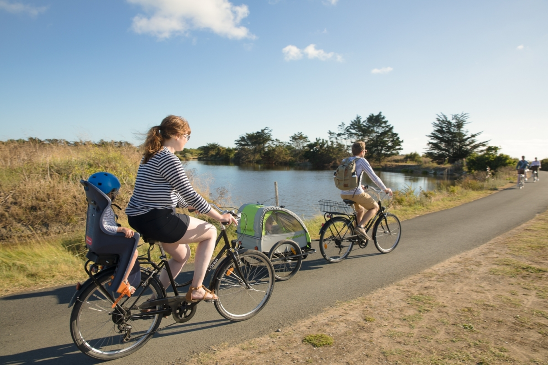 - 1 journée de location de 2 vélos électriques (VAE) et 2 remorques enfant